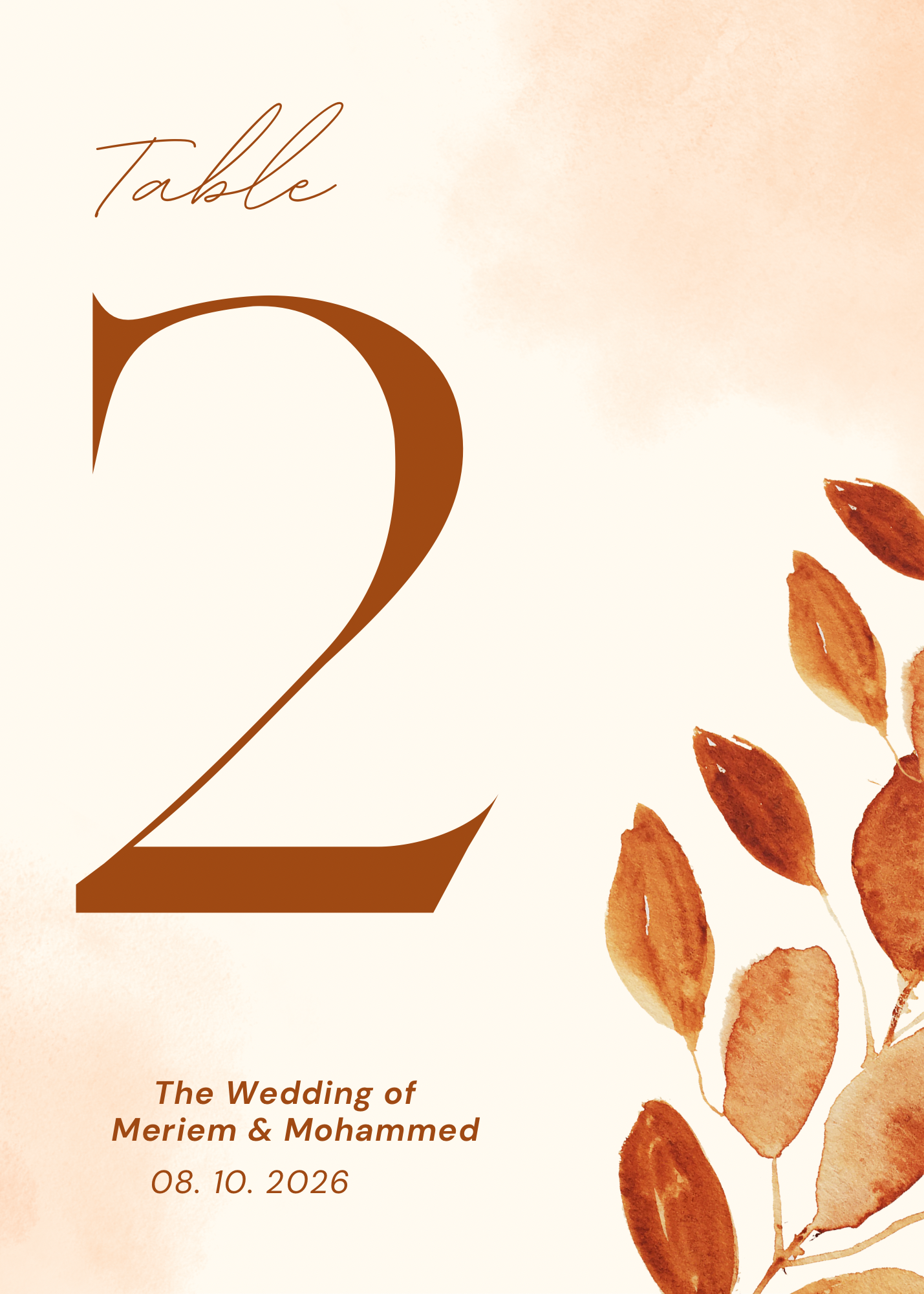 Bring the warmth of autumn to your wedding with this Brown Watercolor Autumn Leaves Wedding Table Number Card. Designed in a classic 5×7 size, this elegant card features soft watercolor leaves in rich brown tones—perfect for adding seasonal charm to your reception tables.