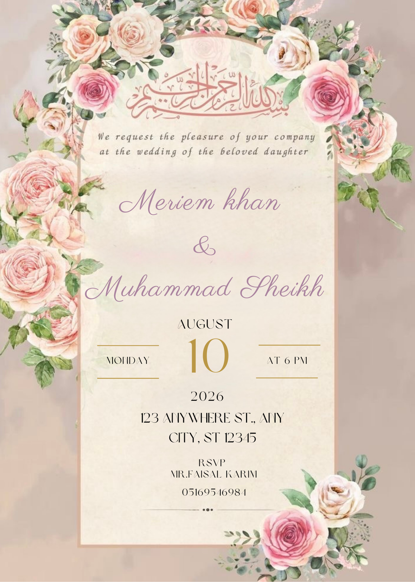 Custom Muslim Wedding Invitation . Editable, digital & printable—perfect for Nikah, Walima & reception.Instant download.