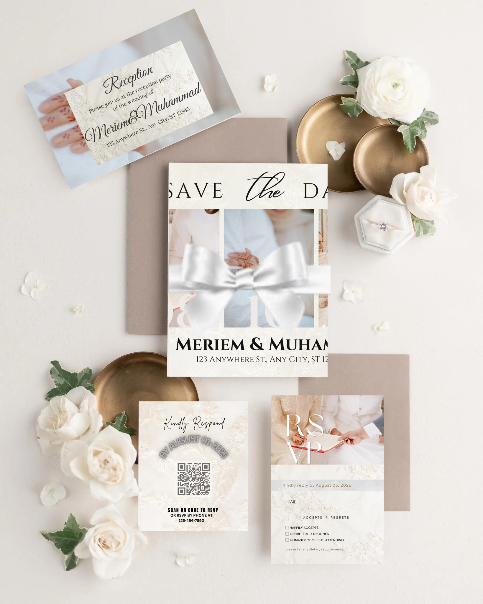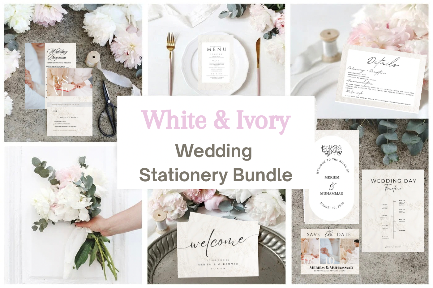 Simplify wedding planning with our Premium Digital Wedding Stationery Bundle, designed for modern brides and grooms. This all-in-one bundle includes 20+ digital and printable templates, covering everything from invitations and RSVP cards to seating charts, menus, signage, favor tags, and even a video invitation. Perfect for Nikah, Walima, or reception events, each template is high-resolution, editable, and faith-conscious, helping you save time, reduce stress, and create a beautifully organized celebration.